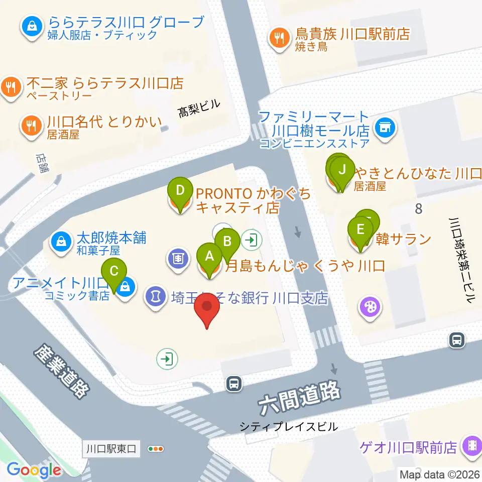 島村楽器 かわぐちキャスティ店周辺のファミレス・ファーストフード一覧地図