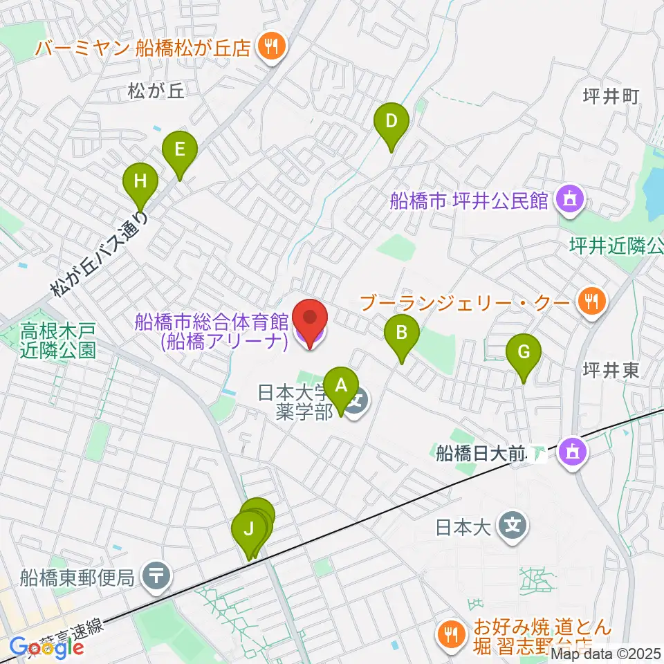 船橋アリーナ周辺のファミレス・ファーストフード一覧地図