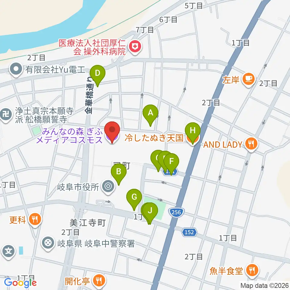 みんなの森 ぎふメディアコスモス周辺のファミレス・ファーストフード一覧地図