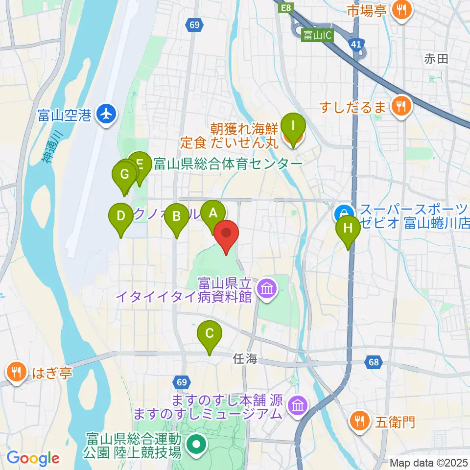 富山能楽堂周辺のファミレス・ファーストフード一覧地図