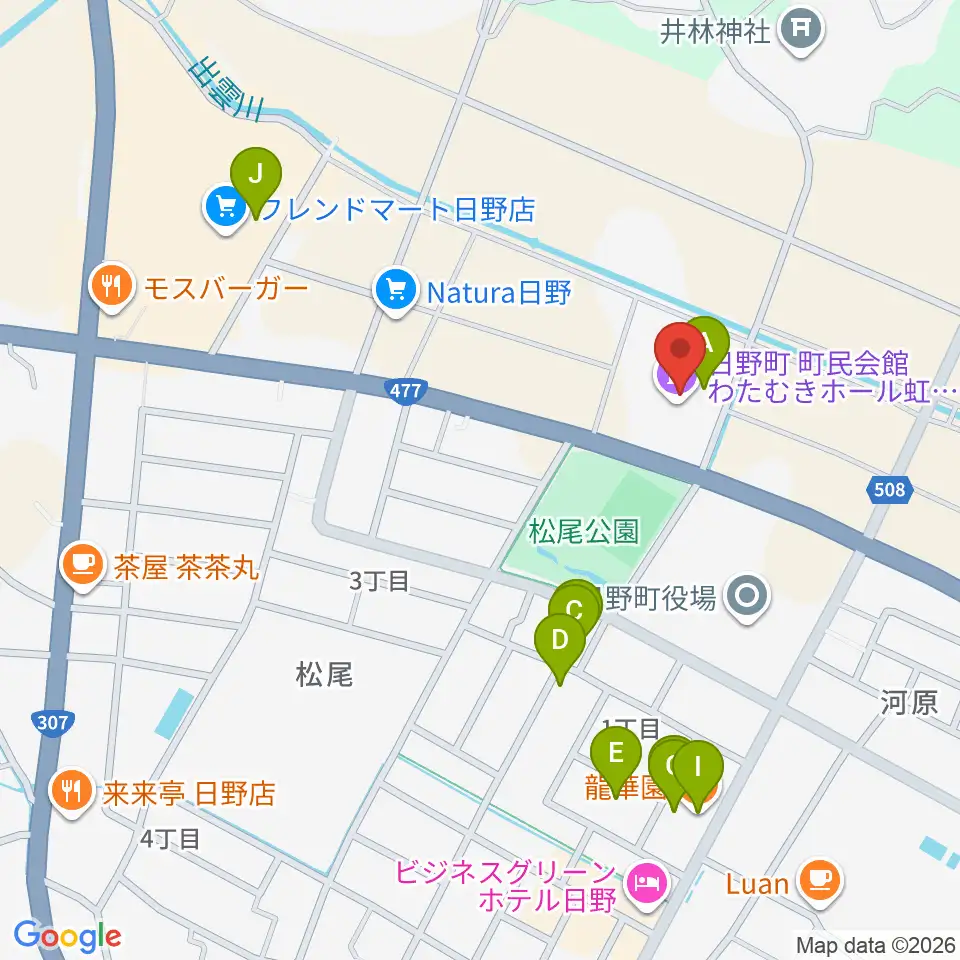 日野町町民会館わたむきホール虹周辺のファミレス・ファーストフード一覧地図