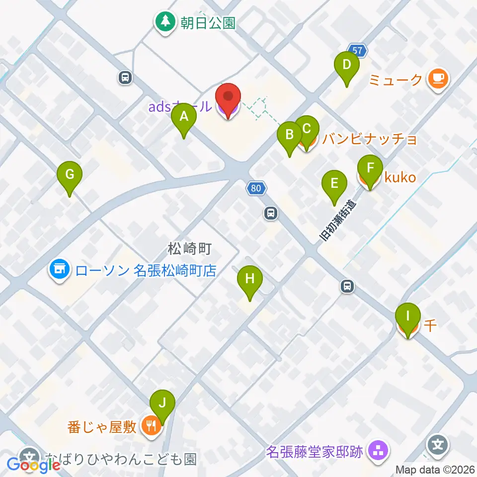 adsホール周辺のファミレス・ファーストフード一覧地図