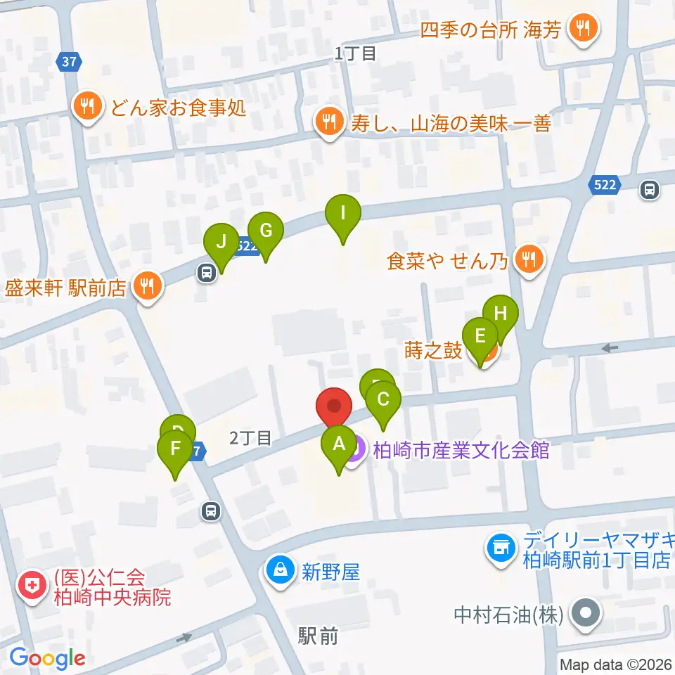 柏崎市産業文化会館周辺のファミレス・ファーストフード一覧地図