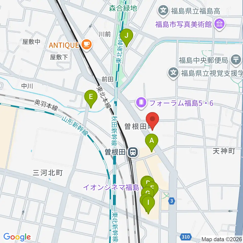 フォーラム福島周辺のファミレス・ファーストフード一覧地図