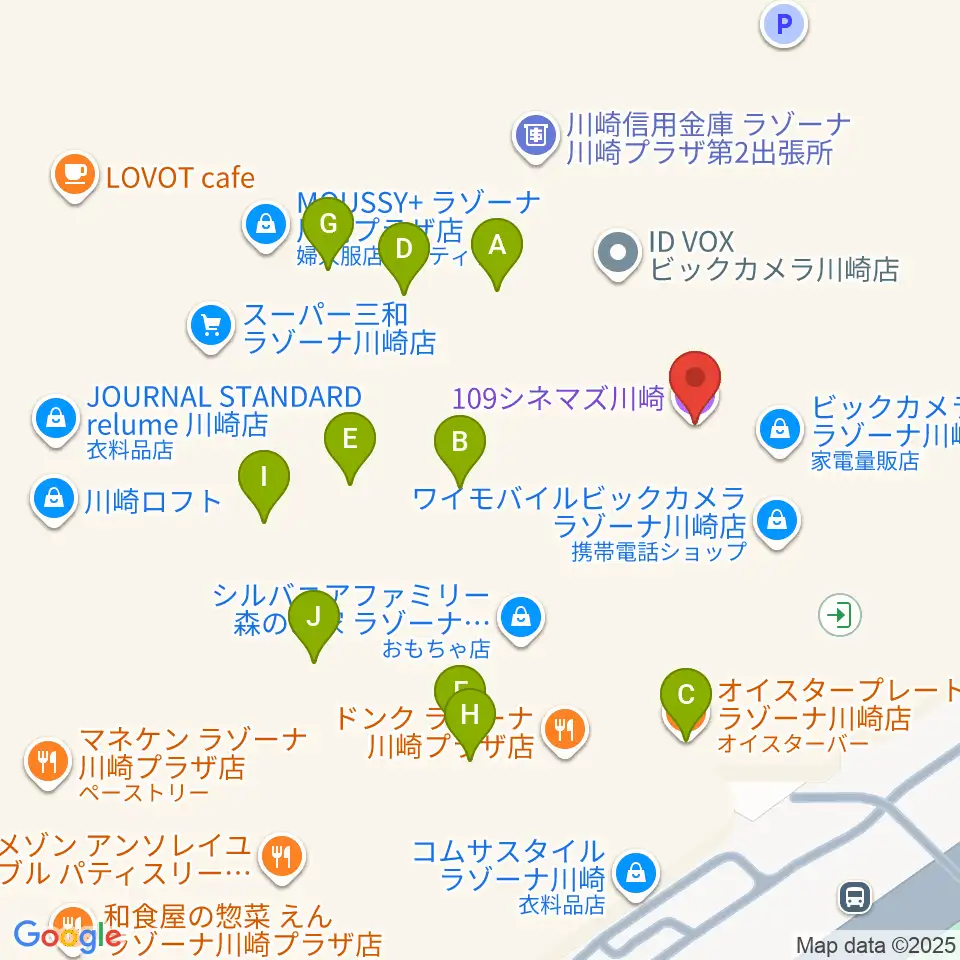 109シネマズ川崎周辺のファミレス・ファーストフード一覧地図