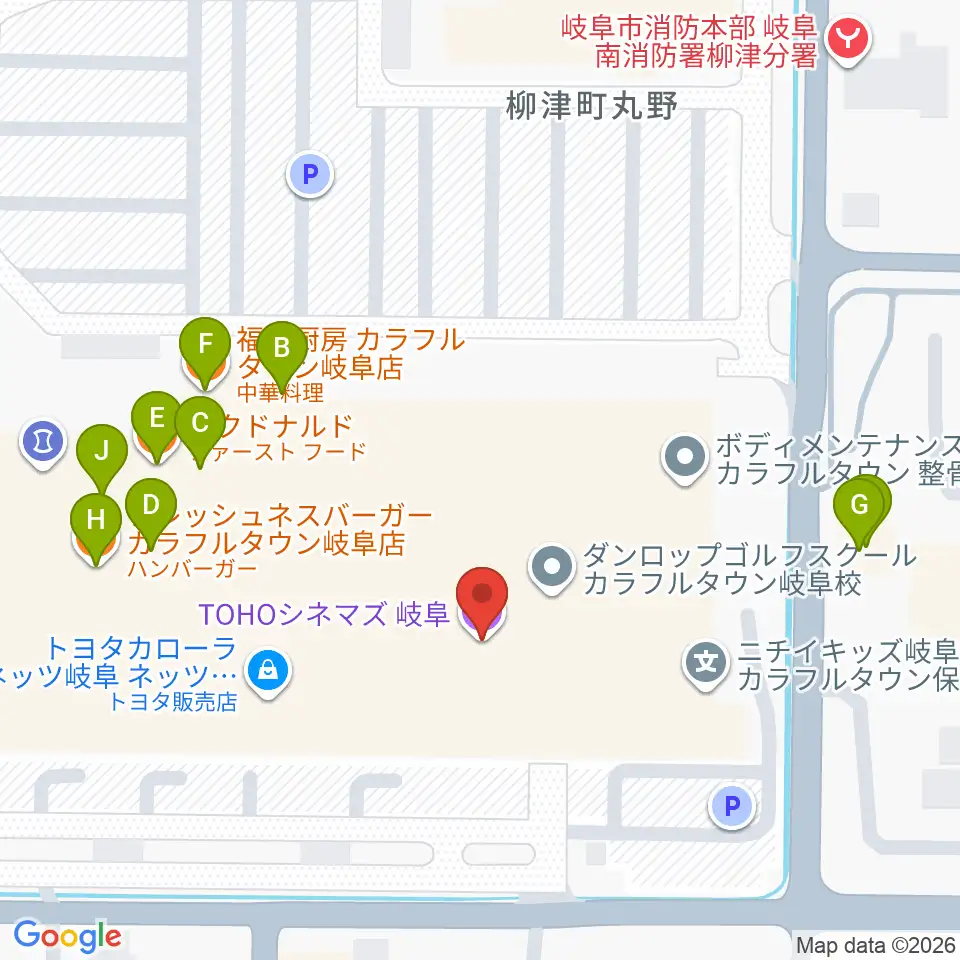 TOHOシネマズ岐阜周辺のファミレス・ファーストフード一覧地図