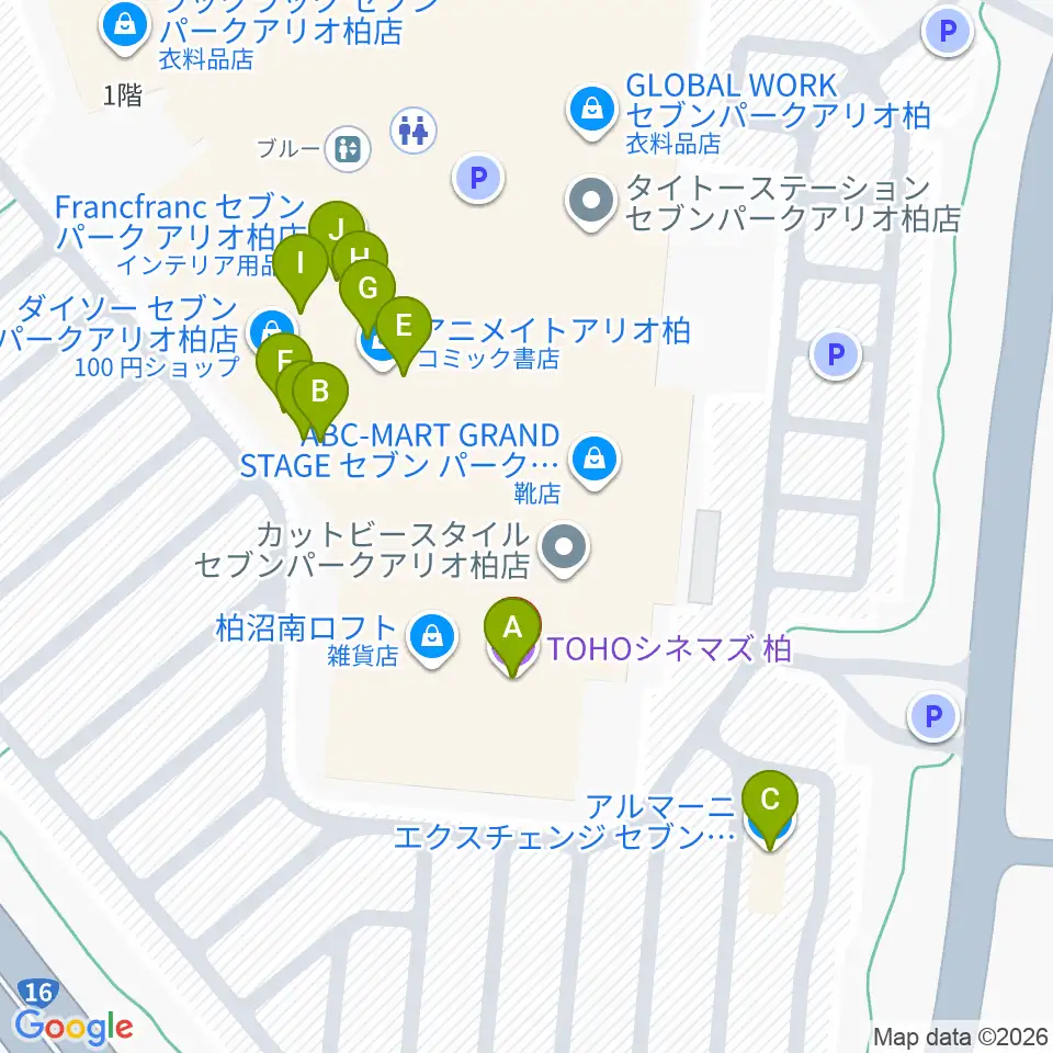 TOHOシネマズ柏周辺のファミレス・ファーストフード一覧地図