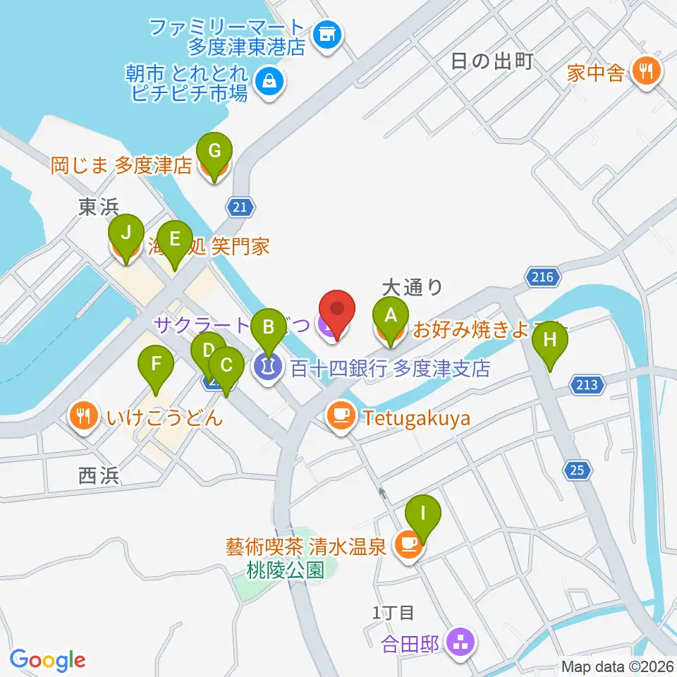 サクラートたどつ 多度津町民会館周辺のファミレス・ファーストフード一覧地図
