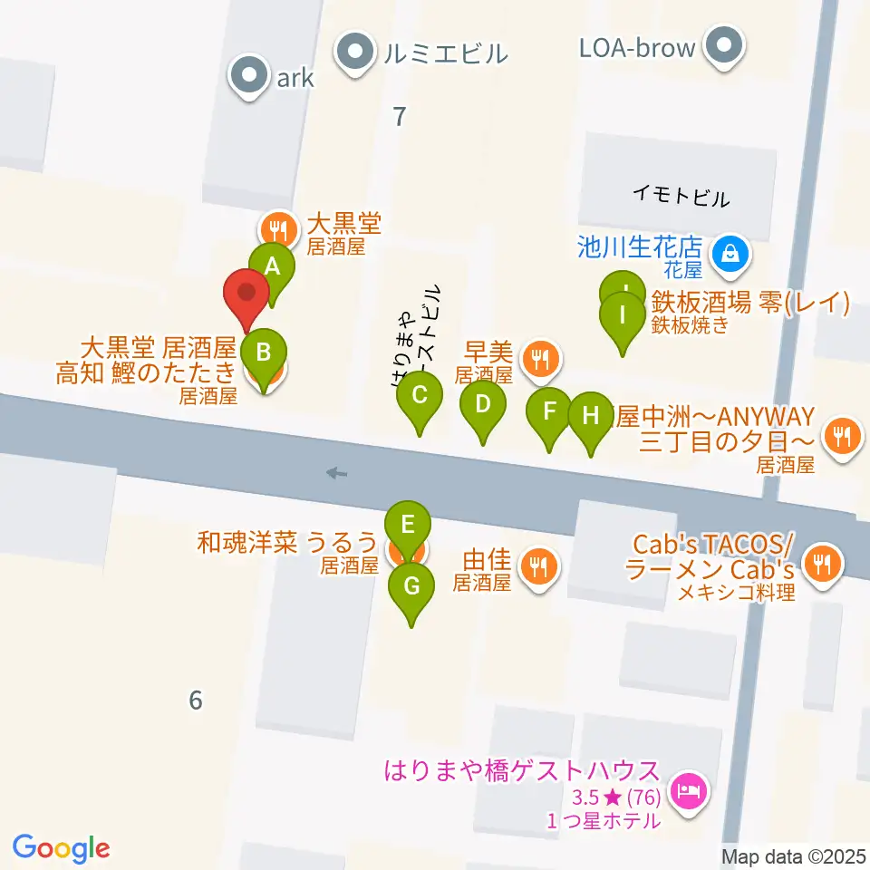 高知ri:ver周辺のファミレス・ファーストフード一覧地図