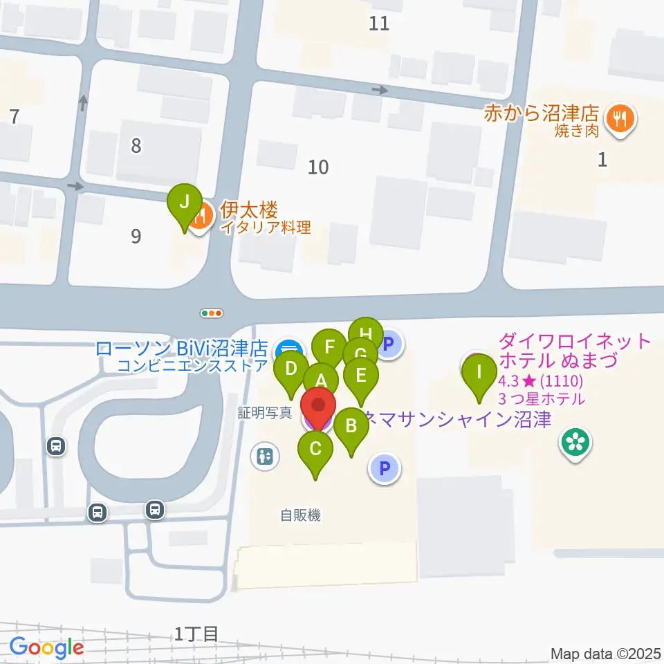 シネマサンシャイン沼津周辺のファミレス・ファーストフード一覧地図