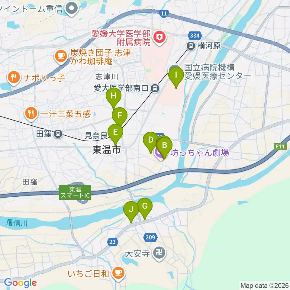 東温アートヴィレッジセンター・シアターNEST周辺のファミレス・ファーストフード一覧地図