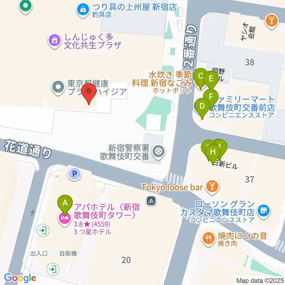 ちんだみ三線店 新宿店周辺のファミレス・ファーストフード一覧地図