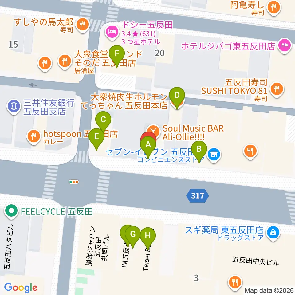 弾き語りbar ピストル周辺のファミレス・ファーストフード一覧地図