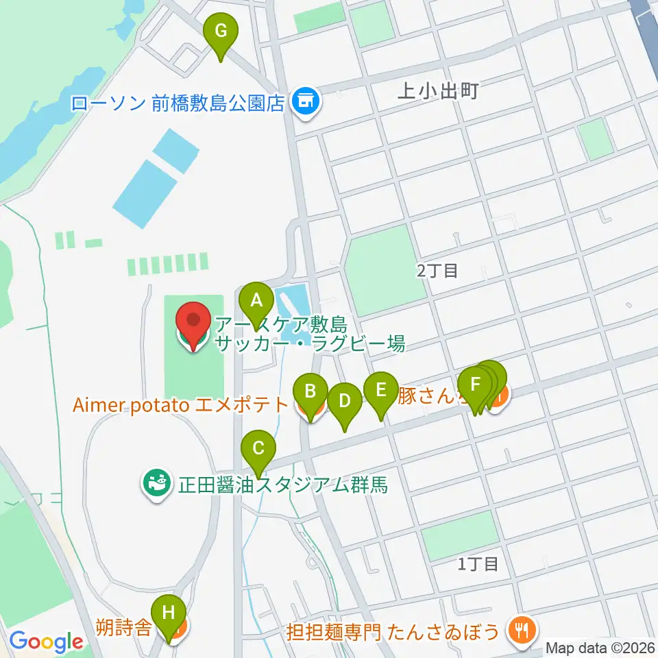 アースケア敷島サッカー・ラグビー場周辺のファミレス・ファーストフード一覧地図