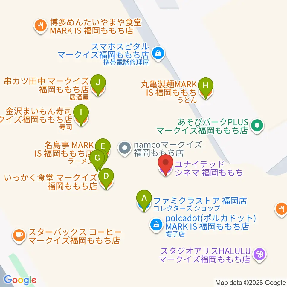 ユナイテッド・シネマ福岡ももち周辺のファミレス・ファーストフード一覧地図