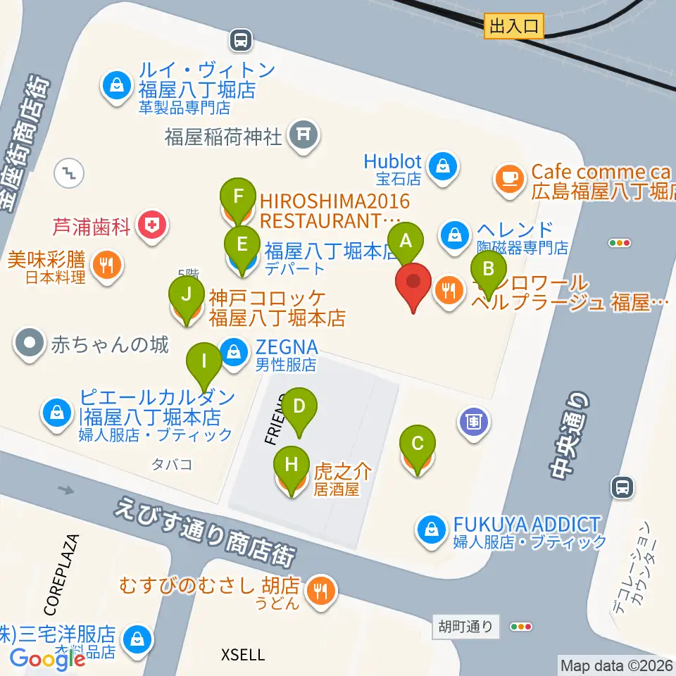 八丁座周辺のファミレス・ファーストフード一覧地図