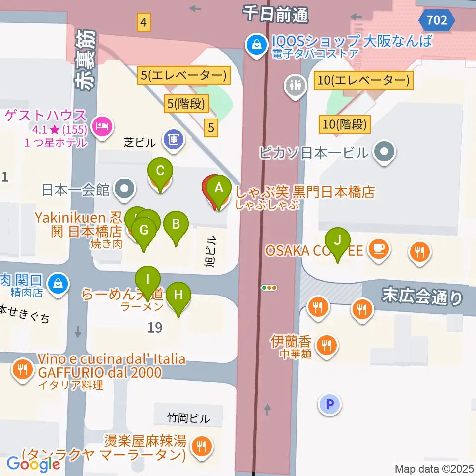 スタジオハイダウェイ日本橋店周辺のファミレス・ファーストフード一覧地図