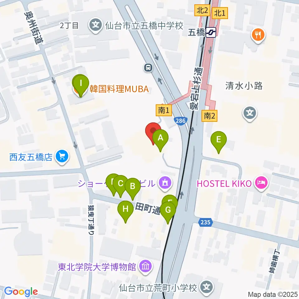 仙台市福祉プラザ周辺のファミレス・ファーストフード一覧地図