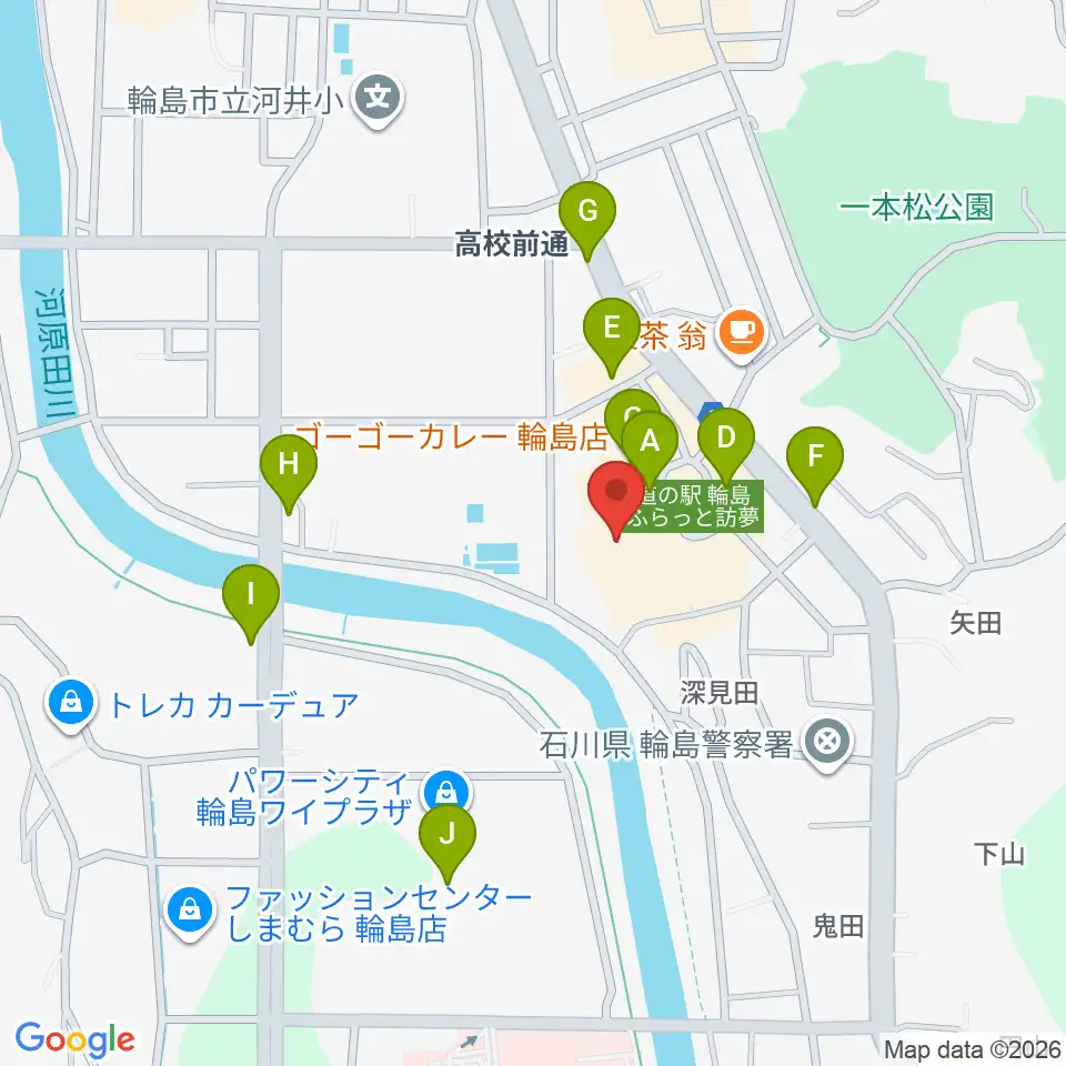輪島市文化会館周辺のファミレス・ファーストフード一覧地図