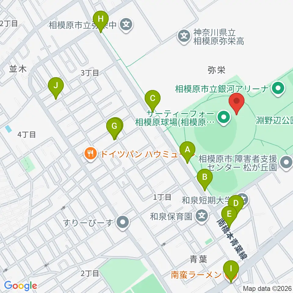 サーティーフォー相模原球場周辺のファミレス・ファーストフード一覧地図