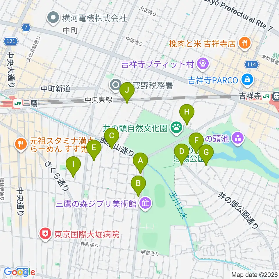 吉祥寺NEPO周辺のファミレス・ファーストフード一覧地図