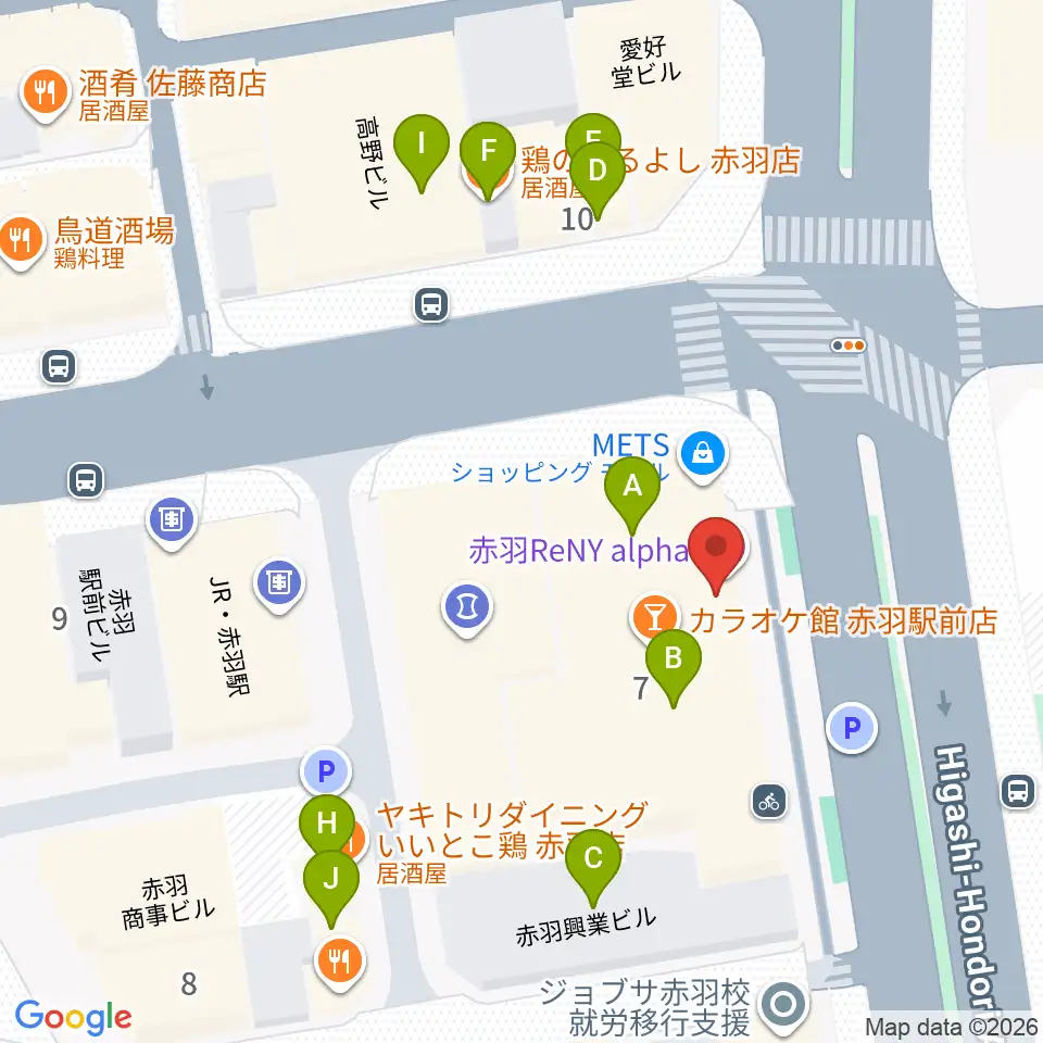 赤羽レニーアルファ周辺のファミレス・ファーストフード一覧地図