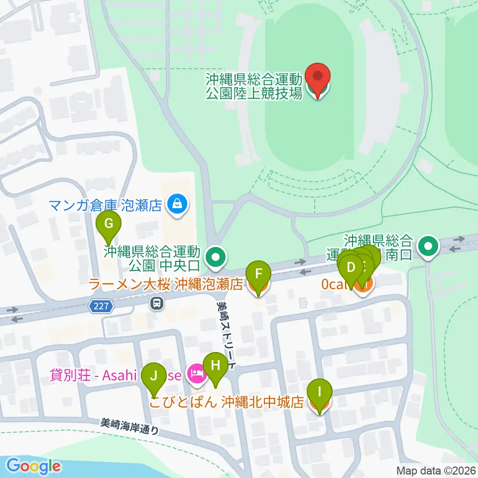 沖縄県総合運動公園陸上競技場周辺のファミレス・ファーストフード一覧地図