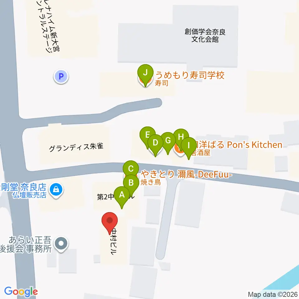 OneNoteミュージックスクール周辺のファミレス・ファーストフード一覧地図