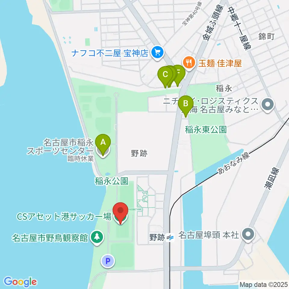 CSアセット港サッカー場周辺のファミレス・ファーストフード一覧地図