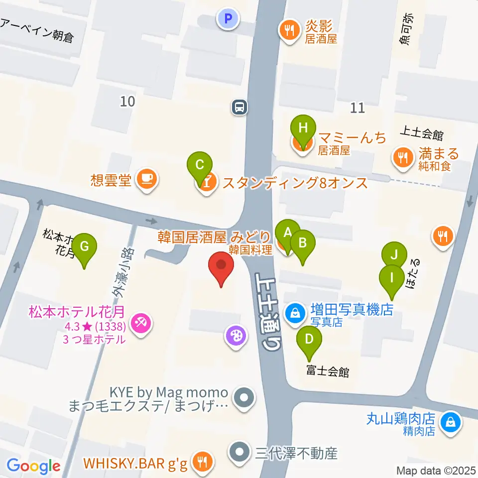 松本市下町会館周辺のファミレス・ファーストフード一覧地図