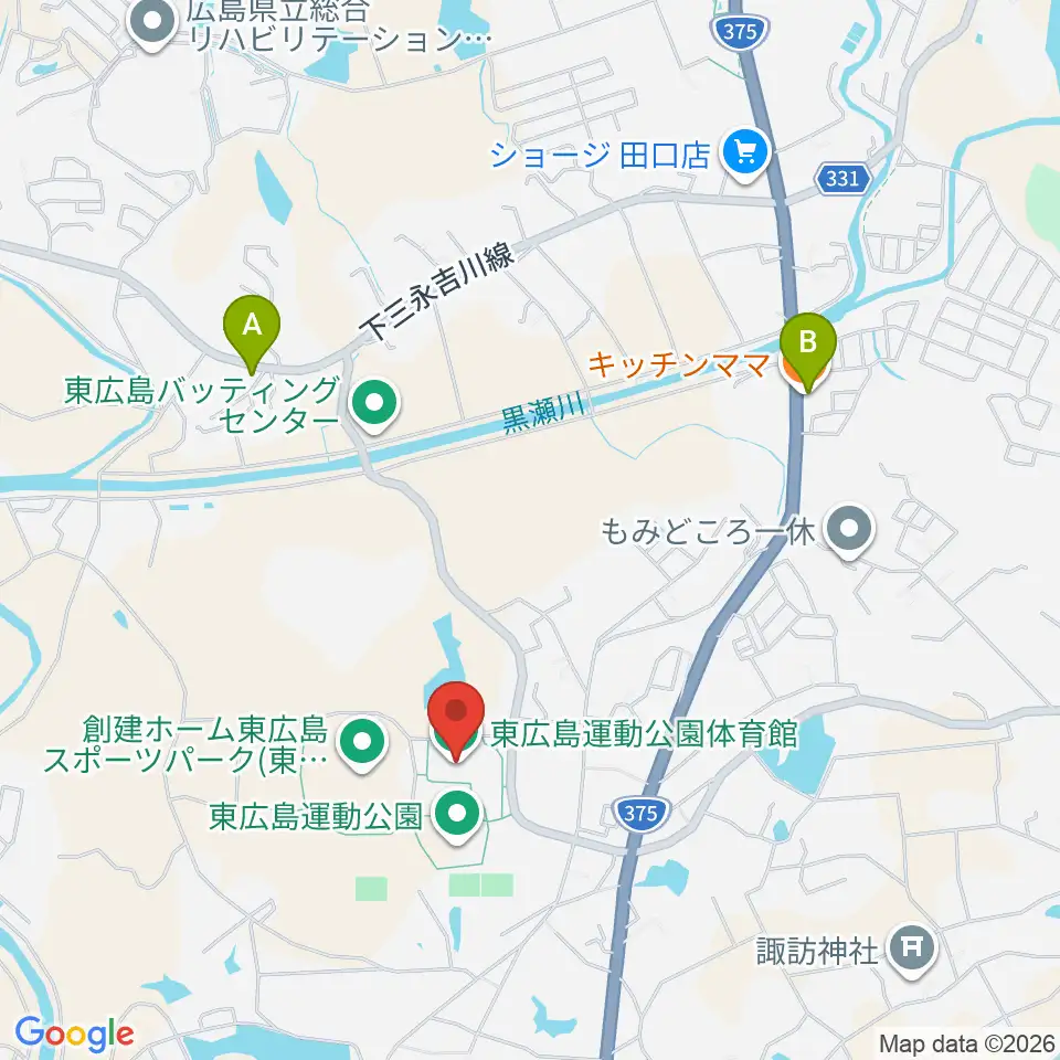 東広島運動公園体育館周辺のファミレス・ファーストフード一覧地図