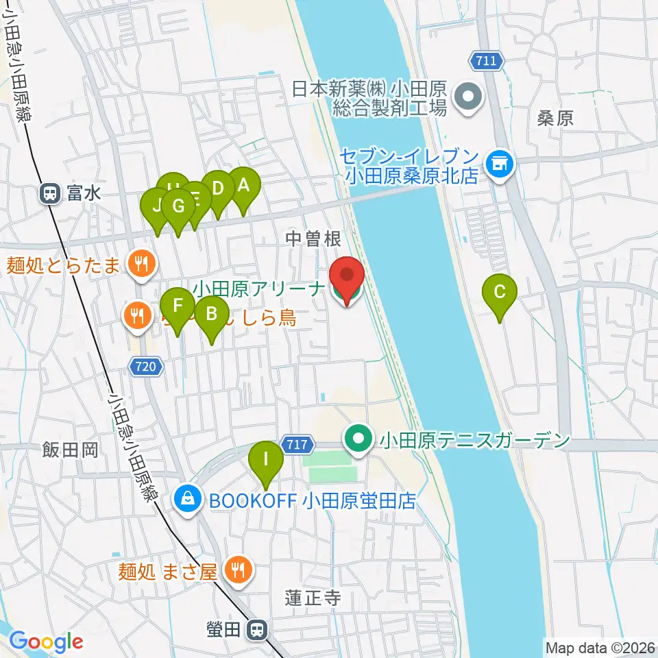 小田原アリーナ周辺のファミレス・ファーストフード一覧地図