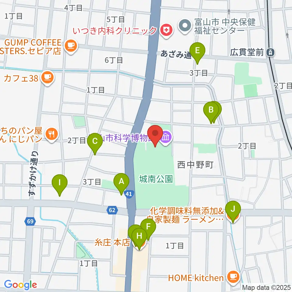 富山市科学博物館周辺のファミレス・ファーストフード一覧地図