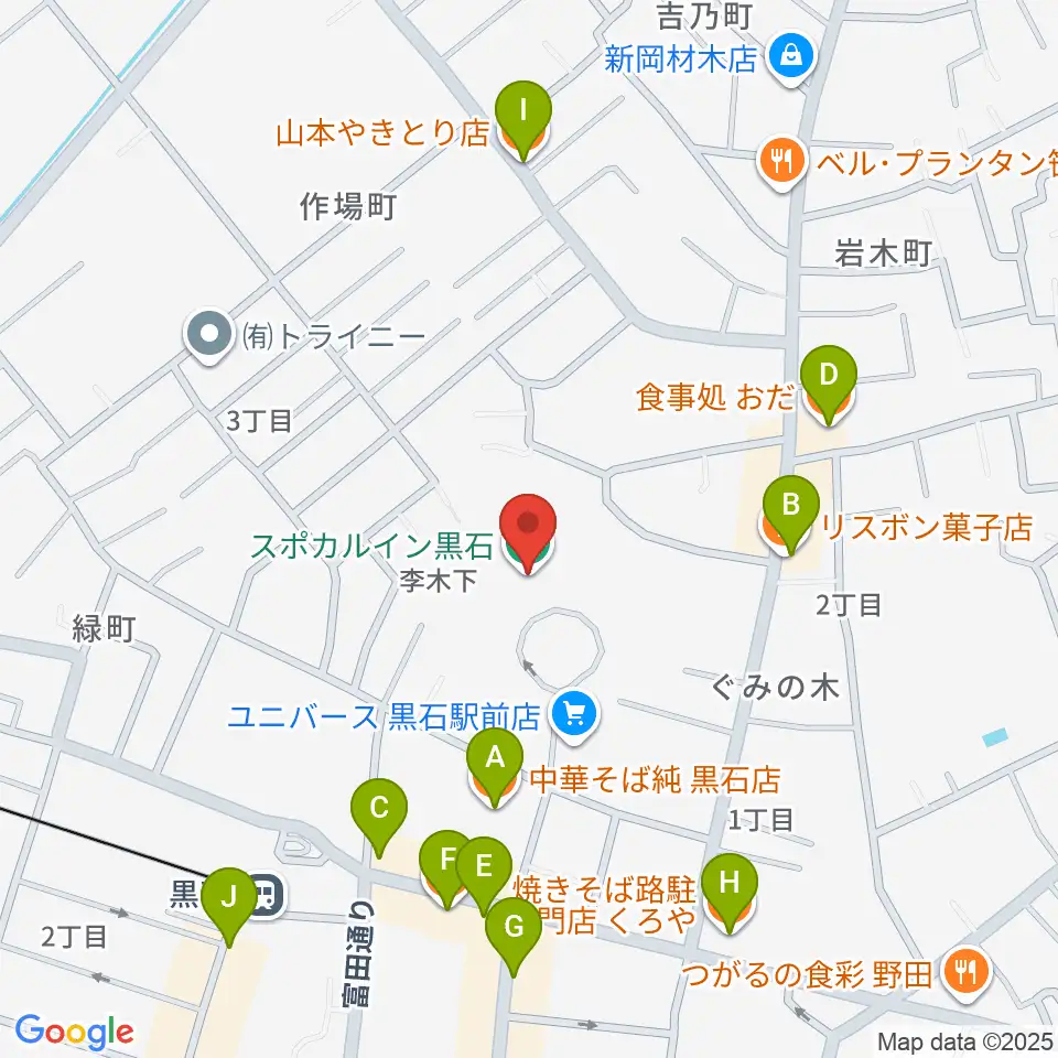 スポカルイン黒石周辺のファミレス・ファーストフード一覧地図