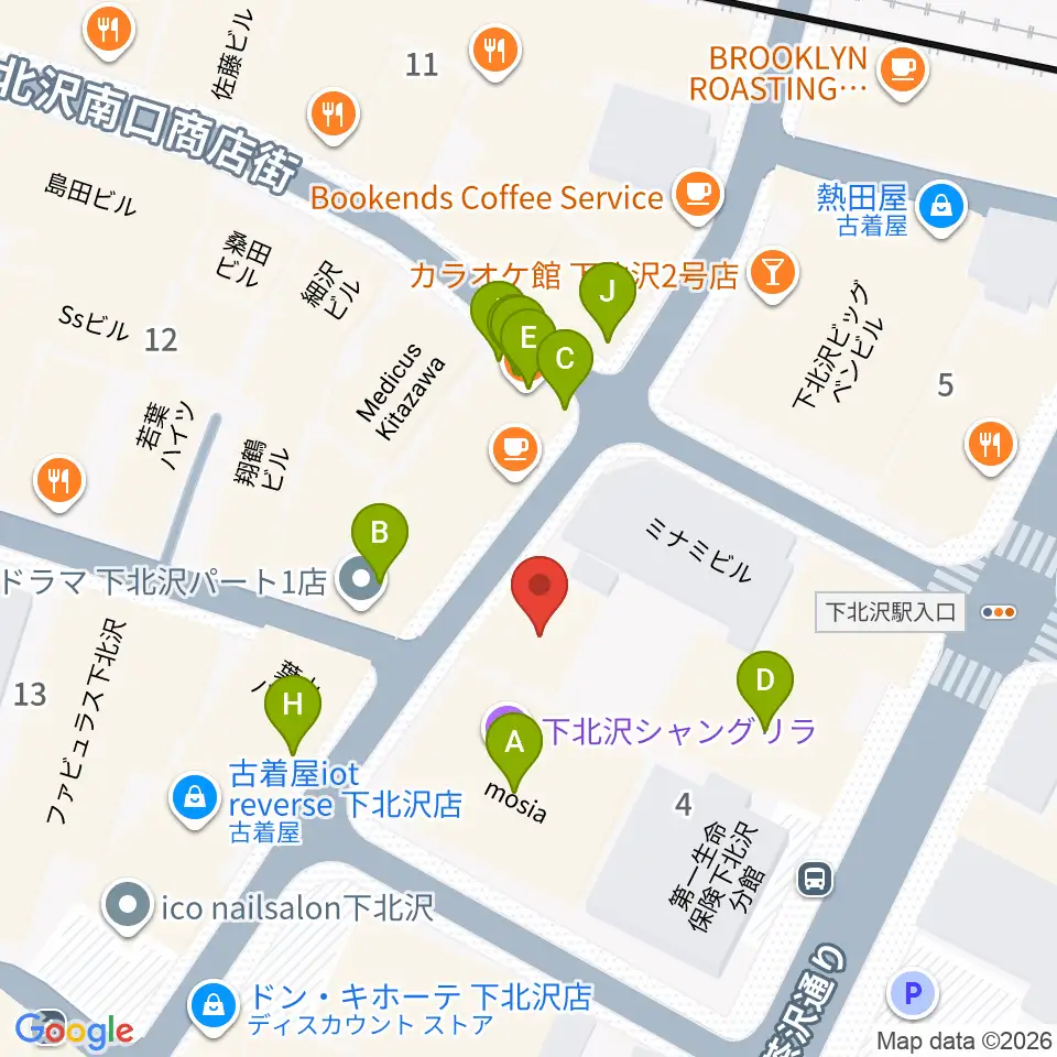 セカンドストリート楽器館下北沢店周辺のファミレス・ファーストフード一覧地図