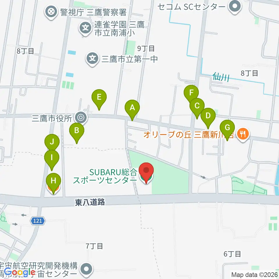 SUBARU総合スポーツセンター周辺のファミレス・ファーストフード一覧地図