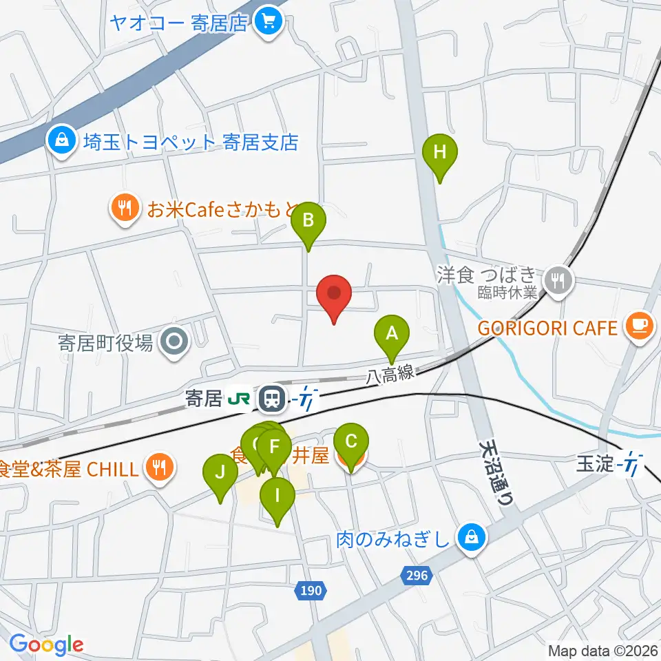寄居町中央公民館周辺のファミレス・ファーストフード一覧地図