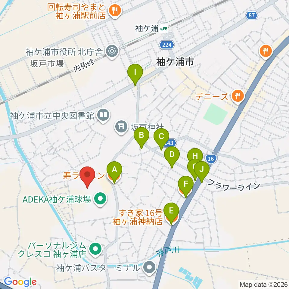ローヴァーズ袖ケ浦スタジアム周辺のファミレス・ファーストフード一覧地図
