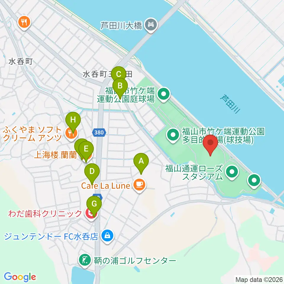 エブリイ福山市民球場周辺のファミレス・ファーストフード一覧地図