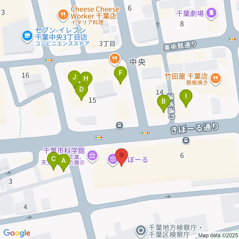 千葉市科学館周辺のファミレス・ファーストフード一覧地図