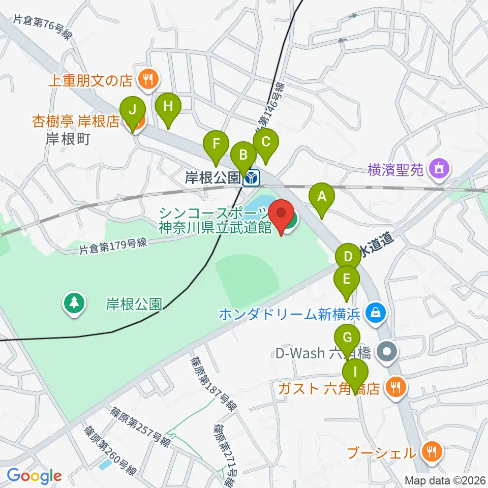 シンコースポーツ神奈川県立武道館周辺のファミレス・ファーストフード一覧地図