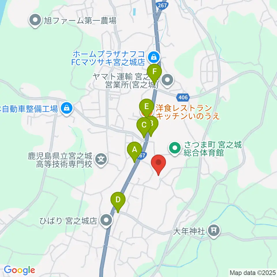 宮之城文化センター周辺のファミレス・ファーストフード一覧地図