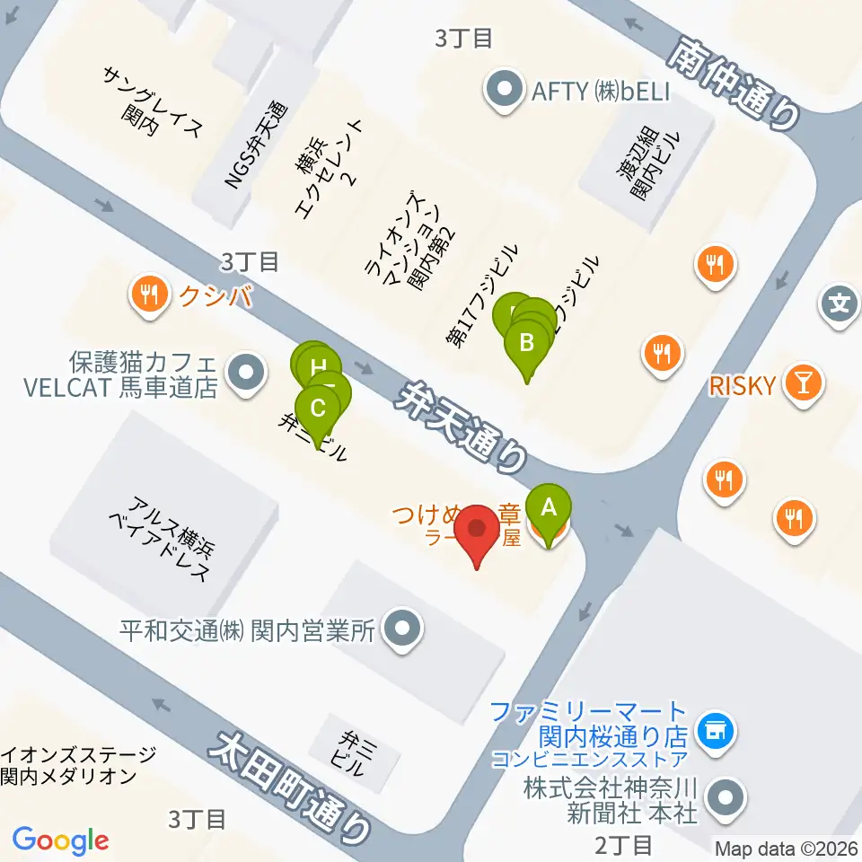 ホムラサウンド横浜スタジオ周辺のファミレス・ファーストフード一覧地図