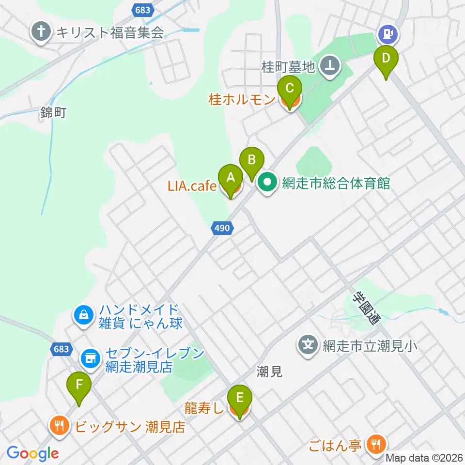FMあばしり周辺のファミレス・ファーストフード一覧地図