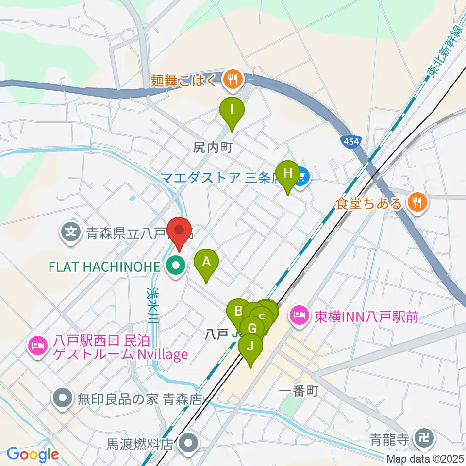 フラット八戸周辺のファミレス・ファーストフード一覧地図