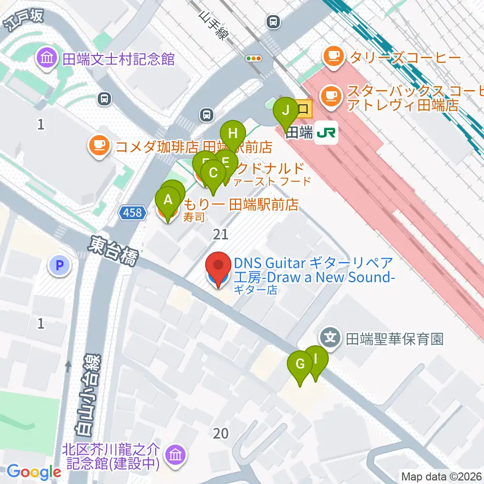 ギターリペア工房DNS周辺のファミレス・ファーストフード一覧地図
