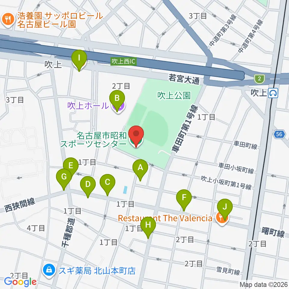 名古屋市昭和スポーツセンター周辺のファミレス・ファーストフード一覧地図