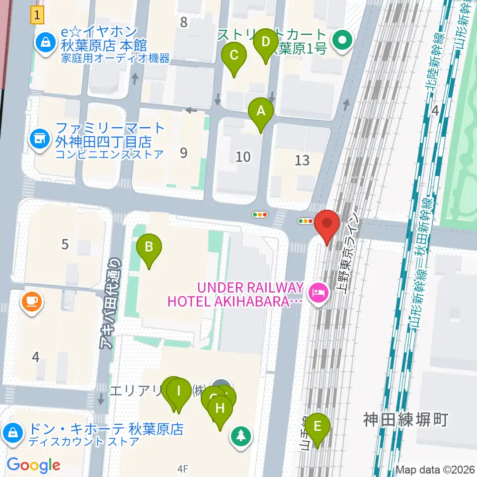 TAIKO-LAB秋葉原周辺のファミレス・ファーストフード一覧地図