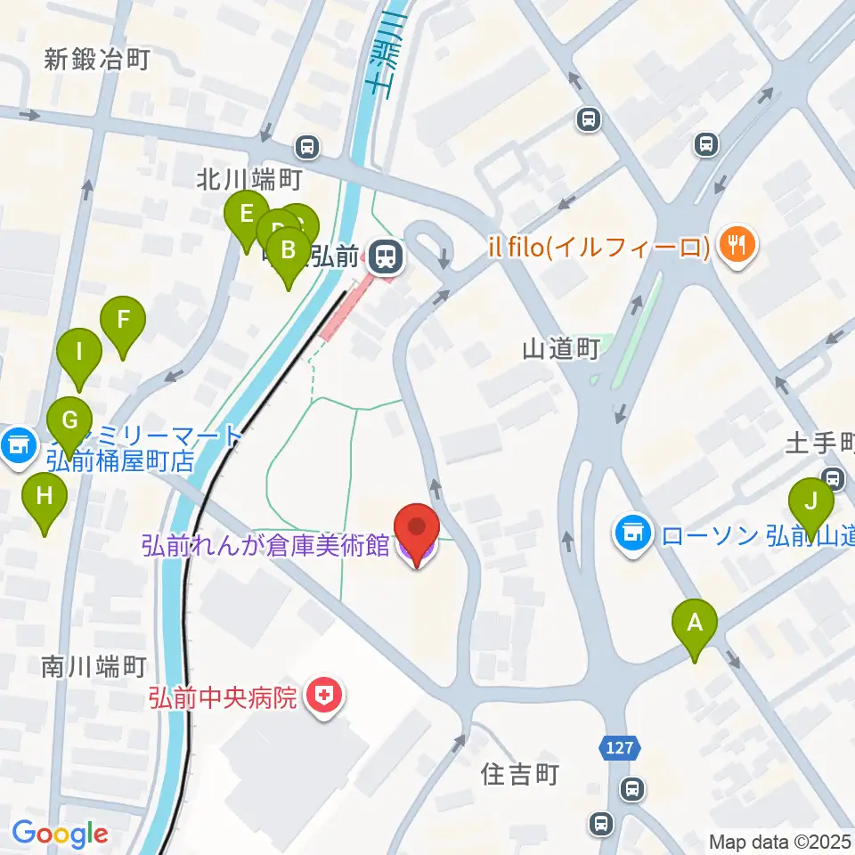 弘前れんが倉庫美術館周辺のファミレス・ファーストフード一覧地図