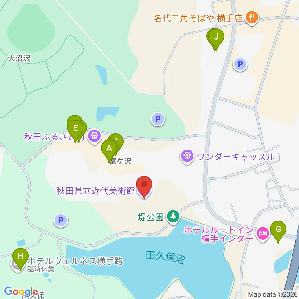 秋田県立近代美術館周辺のファミレス・ファーストフード一覧地図